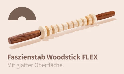 Im Inneren der Holzrollen befindet sich eine bruchsichere Achse, welche dem Faszienstab seine Biegsamkeit gibt. Du kannst Druck ausüben, der Stab gibt aber trotzdem etwas nach und passt sich deinem Körper an.